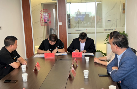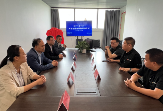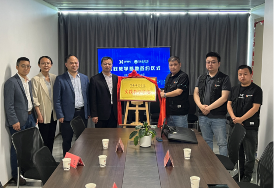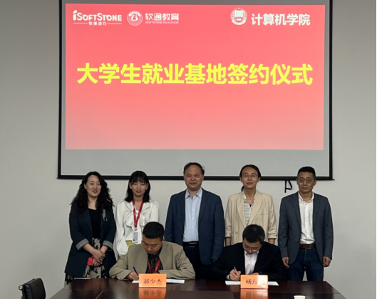 随后,计算机学院分别与西安软通动力网络技术有限公司和西安爱克斯未来文化科技有限公司签订了《大学生就业基地协议》《实践教学基地协议》,凌朝栋为企业授大学生就业基地牌和实践教学基地牌。