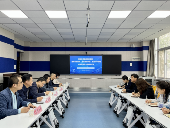 为深入学习贯彻全国两会精神,深化校地合作,“渭南三项主题研修专班、渭南市教研所、渭南高级中学、教育科学学院心理健康专题座谈会”于4月19日上午在知新楼2207召开,渭南市教育研究所所长王军、党支部副书记张云峰、德育室主任李涛涛和渭南市高级中学政教处主任李管峰、政教副主任马宁、政教干事张文斌,教育科学学院党政领导班子全体成员参加会议,会议由学院党总支书记李武军主持。