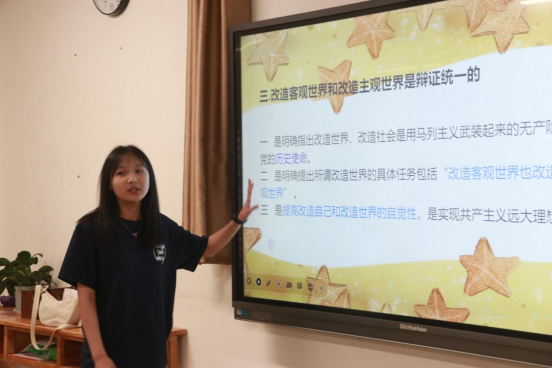 分享会上,同学们围绕经典著作《实践论》分享了自己的看法,并结合“躺平”等社会热点话题以及“实用主义”等思潮展开激烈讨论。过程中覃老师不断抛出问题,大家积极思考,畅谈感想,分享阅读收获,并向大家推荐阅读书目,活动现场书香气氛浓郁。