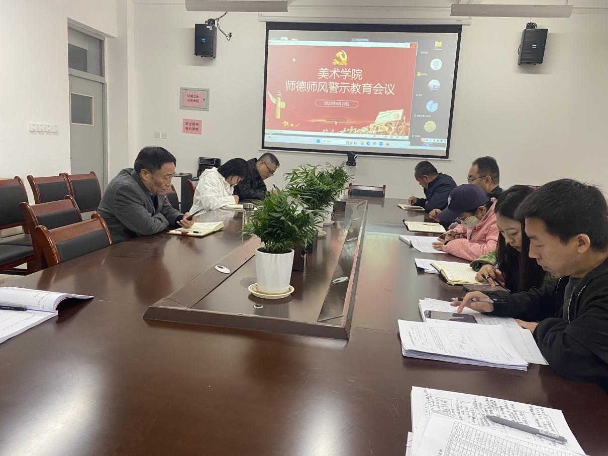 4月23日上午,美术学院根据教育部公开曝光第十二批7起违反教师职业行为十项准则典型案例通过线下线上相结合的方式召开师德师风警示教育会议,美术学院党政领导、专业负责人、全体辅导员参加此次会议。
