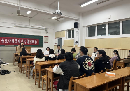 音乐学院党总支副书记杨帆,毕业班辅导员雷晨琛,音乐学院2019级音乐学、舞蹈学、音乐表演专业学生参加此次专场招聘会。招聘会上,杨帆就音乐学院概况、课程设置、师资力量、学生就业等方面信息与公司负责人进行深入交流。杨帆表示,学校会切实考虑到招聘单位需求,与地方企业合作,实现资源共享。