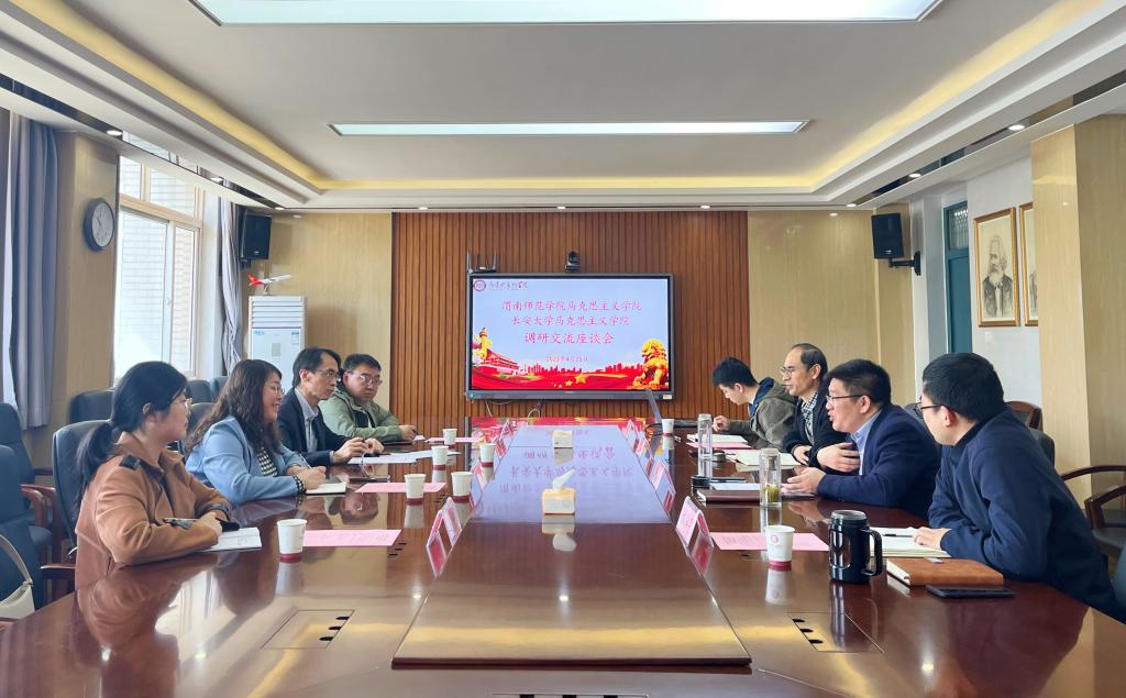 4月25日,马克思主义学院院长张萍、副院长单剑锋及办公室主任孙宁、学工办副主任吴滑一行赴长安大学马克思主义学院学习调研。长安大学马克思主义学院院长陈怀平、副院长王立洲、办公室主任林泓宇、团委书记杨帆出席了座谈会。座谈会由陈怀平主持。