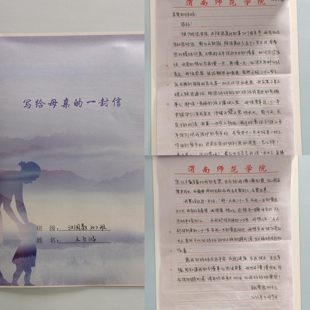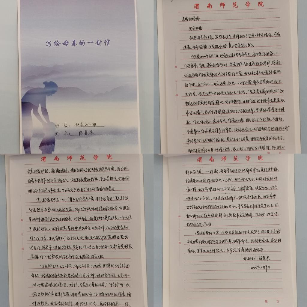 “写给母亲的一封信”是本学期“抒臆人文”开展的系列活动之一,旨在以书信的形式表达对母亲的爱。此次活动广大学子热情高涨,积极参与,以手中的笔言平日不言之情,笔触间细腻深情地表达了对母亲的爱和感谢。活动最后,同学们纷纷把自己的信邮寄或拍照发给母亲,切实让母亲感受到儿女的感恩与思念之情。