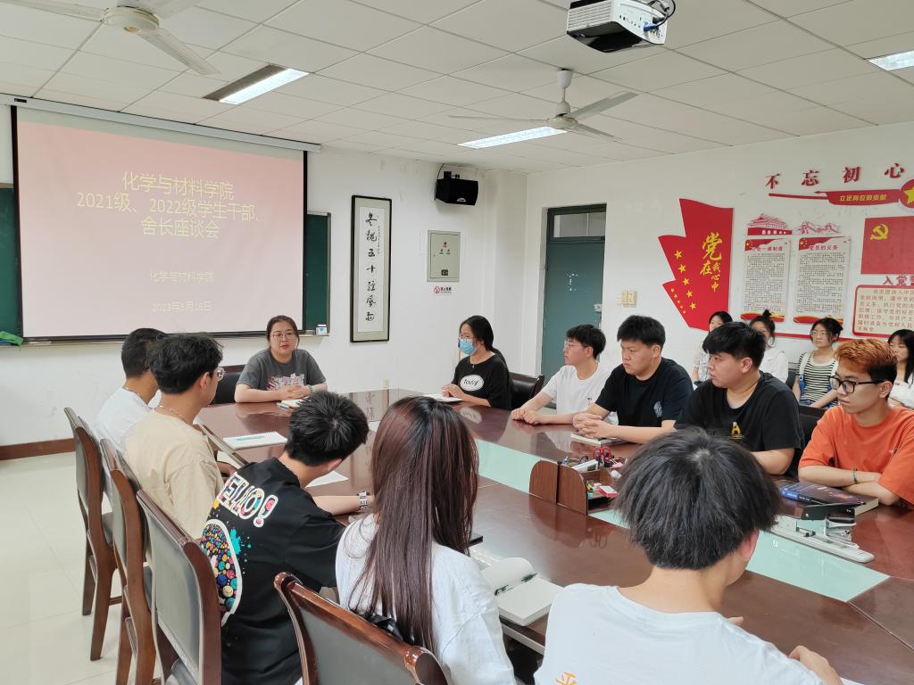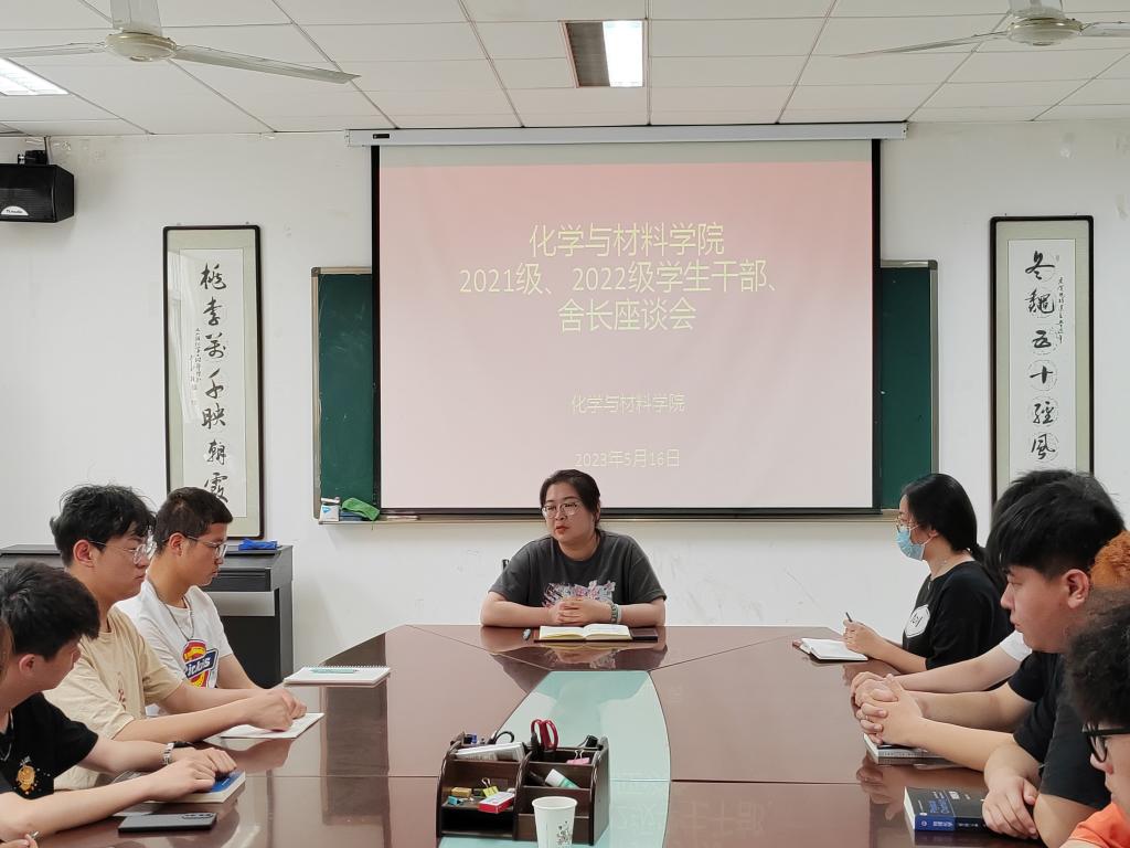 5月16日,化学与材料学院于组织召开学生干部、舍长座谈会。学院党总支副书记任晓婷、辅导员和2021级、2022级学生代表60余人参会。