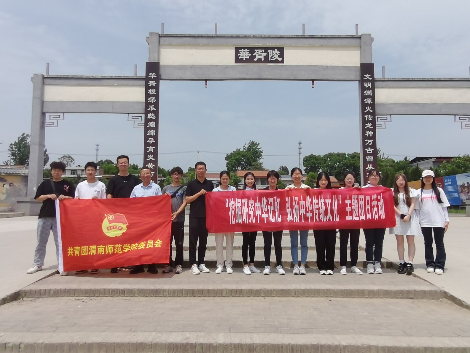 在蓝田县华胥镇的华胥故里,师生们深入了解作为中华民族文化源头的华胥文化。《史记》中记载“华胥氏生伏羲、女娲;伏羲、女娲生少典;少典生炎、黄二帝。”华胥氏因此为中华民族的始祖母,是华夏之根、民族之母。华胥氏是中华各民族的共同先祖;中华民族源于华夏,华夏源于华胥。从华胥到华夏,从华夏到中华,形成了一脉相承的中华民族文化,华胥上古文化成为中华民族文化的重要根源。