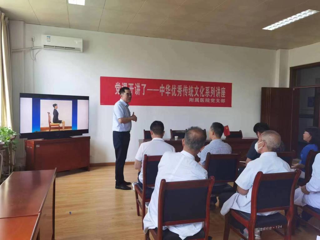 5月19日下午,为了将学习贯彻习近平新时代中国特色社会主义思想主题教育在工作中有效运用,推动主题教育活动走深走实,附属医院党支部在党员活动室开展了“党课开讲啦——中华优秀传统文化系列讲座”活动,特邀请人文学院副教授、中国史教研室主任、渭南市公务员培训中心特聘教师张始峰作第一讲《医务行业礼仪基本规范》的专题讲座,讲座由支部书记王雅蓉主持,支部全体党员、干部、医护参与了活动。
