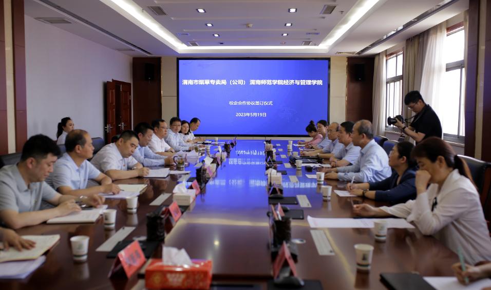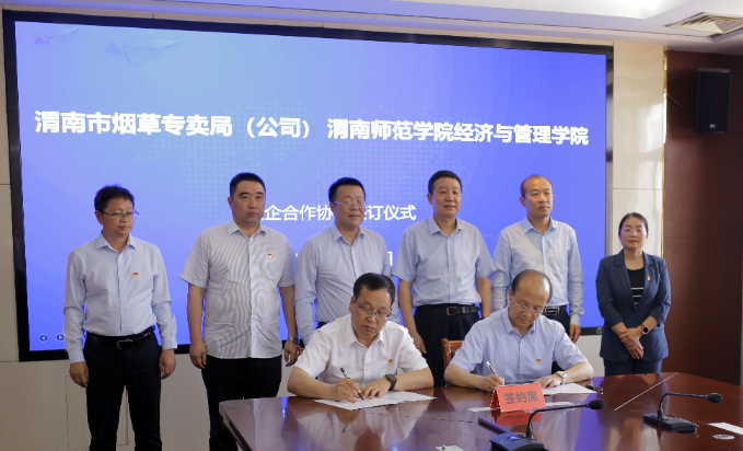 5月19日下午,best365经济与管理学院与渭南市烟草专卖局(公司)在烟草专卖局(公司)举行校企合作协议签约仪式。渭南市烟草专卖局(公司)副经理贺会彬主持签约仪式,best365党委副书记、纪委书记、监察专员肖耀刚出席活动并讲话。