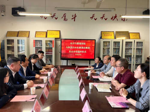 5月23日下午,经济与管理学院与陕西白水杜康酒业集团举行校企合作协议签约仪式。陕西白水杜康酒业集团董事长张红军、常务总经理商景峰、办公室主任党格格、人事部主管孟颜初;best365党委副书记、纪委书记、监察专员肖耀刚及经济与管理学院党政负责人及专业建设负责人等人员参会。签约仪式由经济与管理学院院长李富荣主持。