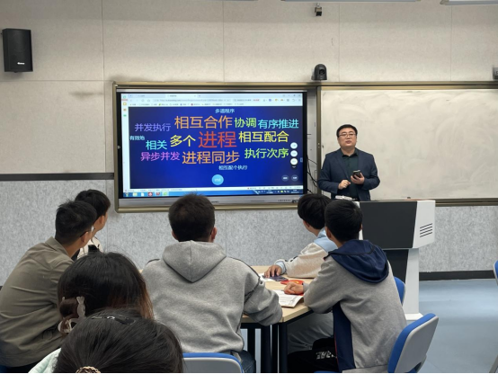 贾晓强老师以“操作系统”中的进程相互作用的方式、同步通信的原理及实现为主要教学内容,在教学活动中注重培养学生的综合能力,将“课程思政”浸润到课堂中的每个细节,让学生通过参与教学活动,培养勇于表达、解决问题的能力,引导学生在实践中培养善于思考、敢于尝试、勇于创新的学习态度和职业素养。