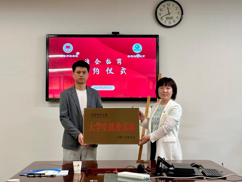 会议最后,张晶与睿思达特教育培训学校有限公司签订了《共建大学生就业基地协议书》,授“大学生就业基地牌匾”。