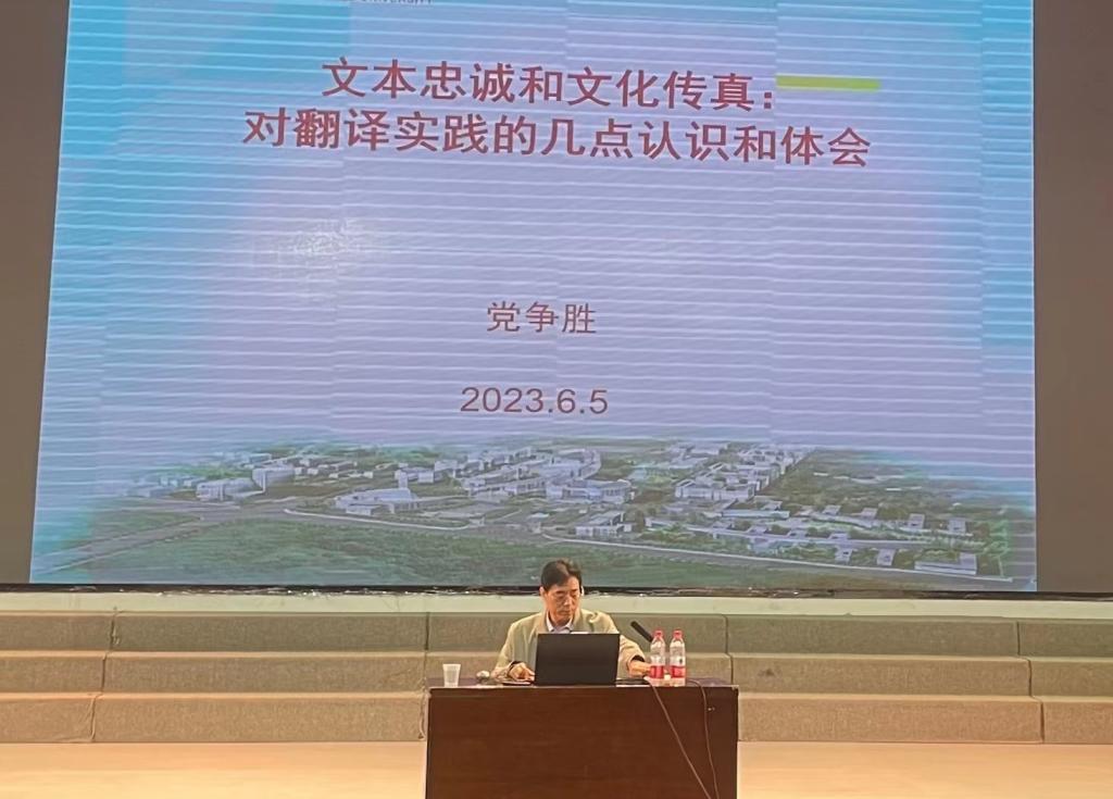 6月5日下午,外国语学院邀请西安外国语大学副校长党争胜教授在陶然楼演艺厅为外国语学院师生作了题为《关于文本忠诚与文化传真:对翻译实践的几点认识和体会》的学术报告,讲座由副校长常青林主持。