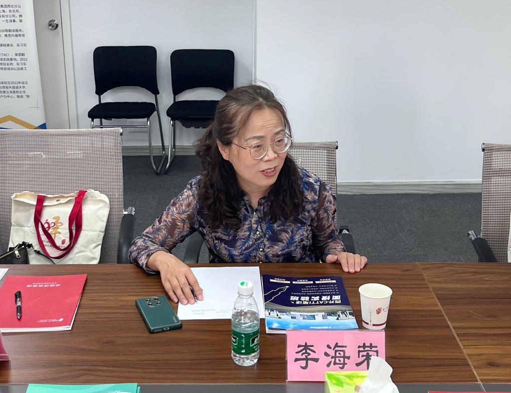 李海荣介绍了外国语学院的基本情况,重点介绍了学院学科建设、专业建设和人才培养情况,表达了双方共建实习基地,共谋校企发展的良好愿望和期许。