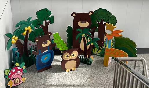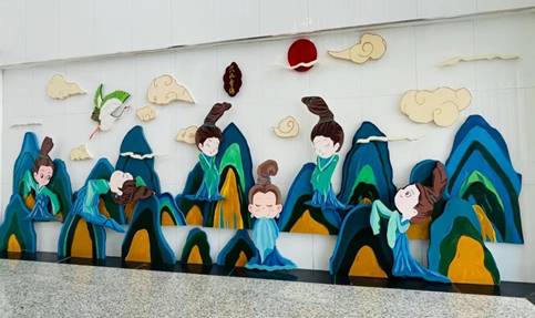 “环创巧育人” 展示区,展出环创作品40余幅,是本学期阴光艳老师、石洁老师、崔莹莹老师《学前教育机构教育环境创设(设计)》课程教学实践成果,由学前教育专业21级学生创作完成。环境作为“第三位老师”,作为幼儿园的一种隐形课程,应具有教育、记录的功能,此次“环创巧育人”即是基于此种理念。同学们在创作过程中精准的掌握了环境创设的核心内容,通过区角作品、主题墙作品、活动区作品进一步强调了环境的“中介和桥梁”作用。