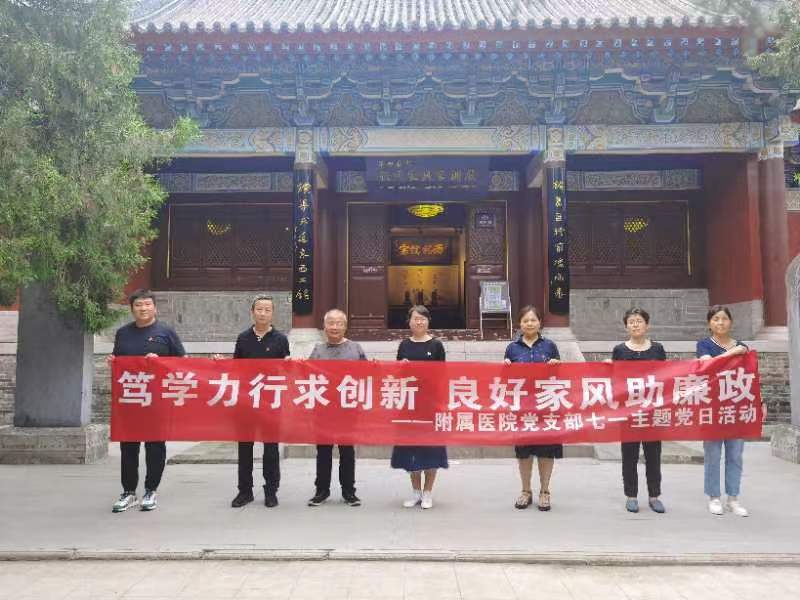 为庆祝中国共产党成立102周年,深入开展学习贯彻习近平新时代中国特色社会主义思想主题教育,进一步坚定理想信念,强化党员的党性修养。7月1日,附属医院党支部组织党员干部赴宝鸡扶眉战役纪念馆、张载祠开展“庆七一”主题党日活动,共同缅怀革命先烈,传承红色基因,体验革命精神,激发干事热情。