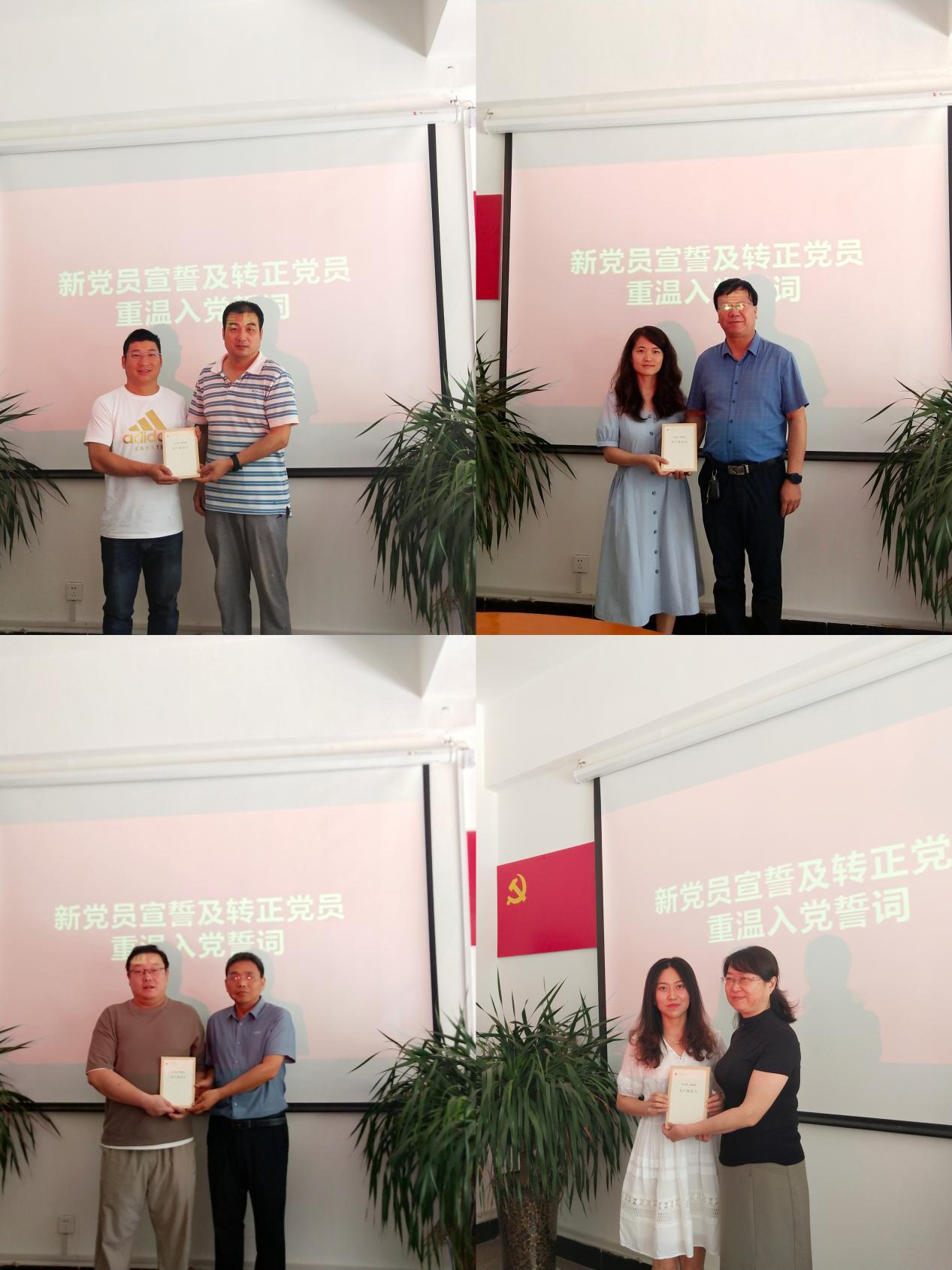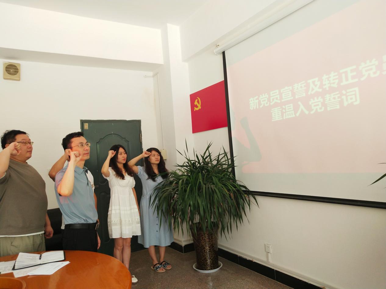 7月5日上午,best365附属单位党总支在党员活动室举行新党员入党宣誓及转正党员重温入党誓词仪式。党总支委员、各支部书记或负责人、党务工作者以及新发展党员、转正党员参加此次仪式。