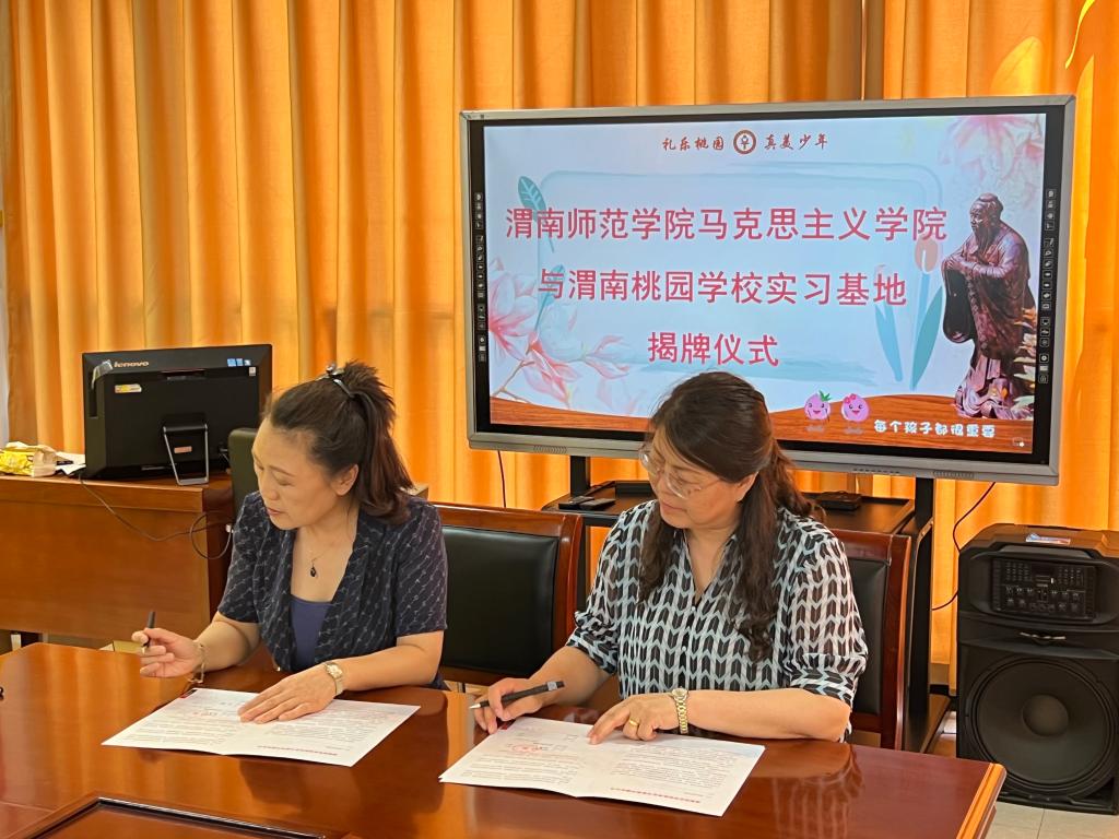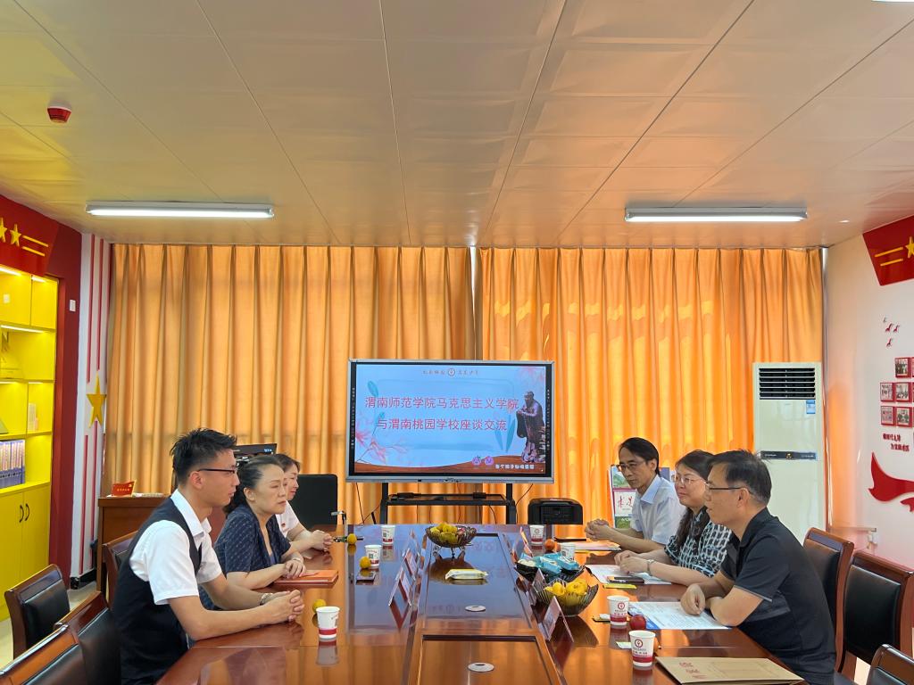 7月4日下午,马克思主义学院赴渭南桃园学校对接大中小学思政课一体化建设工作。召开交流座谈会并签订大学生就业基地协议和实践教学基地协议。渭南桃园学校校长王琰、执行校长赵平利、常务副校长张星,马克思主义学院院长张萍、副院长单剑峰、思政专业负责人曹立新、青年教师周韶尉等参加了本次活动。