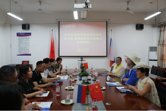 座谈会上,执行院长席景奇介绍了莫斯科艺术学院概况,对办学特色进行详细说明。谢尔盖分享了中外油画艺术方面的差异及自己多年油画创作的体会,对师生们最新创作的书画作品提出高度评价,并表示:“莫斯科艺术学院的硬件设施体现了俄罗斯风格和元素,环境很好,希望能与师生们共同努力,推动中俄文化艺术交流。”美术学专业教师畅谈了对艺术创作的认识,并与谢尔盖讨论有关中俄艺术教育体系的异同,现场气氛热烈。