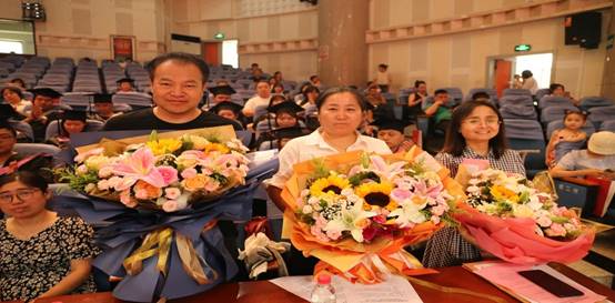 毕业生代表向教师代表献花,一束束鲜花表达了学子对老师们最真挚的感谢和祝福,也让在场老师们倍感温暖和幸福。