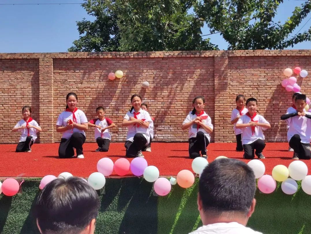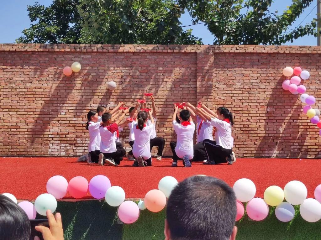 在汇报演出中,实践团成员和孩子们共同为观众献上了一场精彩的演出。实践团成员结合不同年级学生实际编排了舞蹈、歌曲、手势舞等节目。孩子们自信从容,歌声悠扬动听,舞姿欢快活泼,充分展现了他们的青春活力。演出的最后,在由各年级学生代表参演的情景剧《跨越百年的承诺》中,小演员们佩戴红领巾,手拿红色纸船,歌颂党的百年历程。孩子们的声音铿锵有力、高亢激昂,将现场气氛推向高潮,为本场文艺演出画下完美的句号。