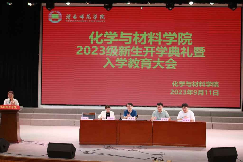 9月11日下午,化学与材料学院在陶然楼演艺厅隆重举行2023级新生开学典礼暨入学教育大会。学院副院长王冬华、刘展晴、党总支副书记任晓婷、教师代表、办公室主任刘楠楠、教学秘书郑博、新生辅导员以及全体2023级新生参加了此次开学典礼,典礼由党总支副书记任晓婷主持。