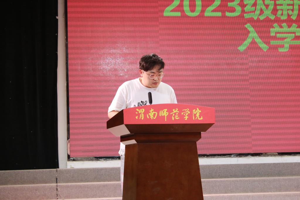 刘展晴从培养目标、专业设置、学业预警、学生考研、就业前景等方面给新生介绍了学院的基本情况。他寄语新生“盛年不重来,一日难再晨,及时当勉励,岁月不待人”,希望同学们珍惜校园时光,刻苦学习,钻研学业。