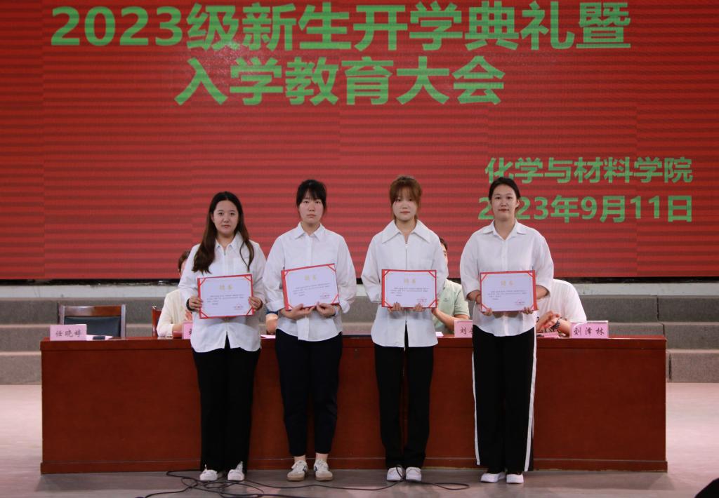 会上,学生代表2021级材料化学211班谢继苗与2023级化学本科215班刘佳妮分别作为高年级学生和新生代表发言。谢继苗介绍了她在学习、生活中的收获与感悟,分享了她的学习经验。刘佳妮代表新生表达了对师长的感谢,她表达了对大学生活的憧憬,代表全体新生表态,今后将以学长为榜样,保持昂扬的奋斗姿态,锚定目标、笃行不怠,立足新起点,展现新面貌,在青春的赛道上努力奔跑,要做怀抱梦想又脚踏实地,敢想敢为又善作善成的新时代好青年。