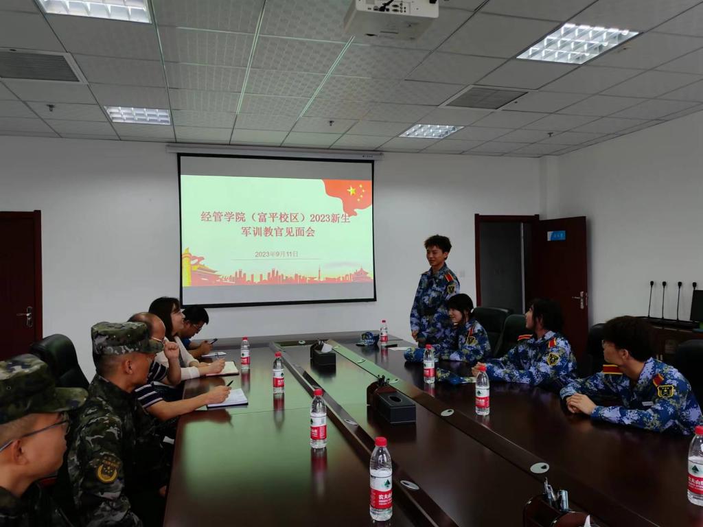 9月11日下午,经济与管理学院(富平校区)在行政楼221举行2023级新生军训教官见面会。参会人员有经济与管理学院院长李富荣,辅导员杜炳鋆、王晶及新生代表。会议有刘婉婷主持。