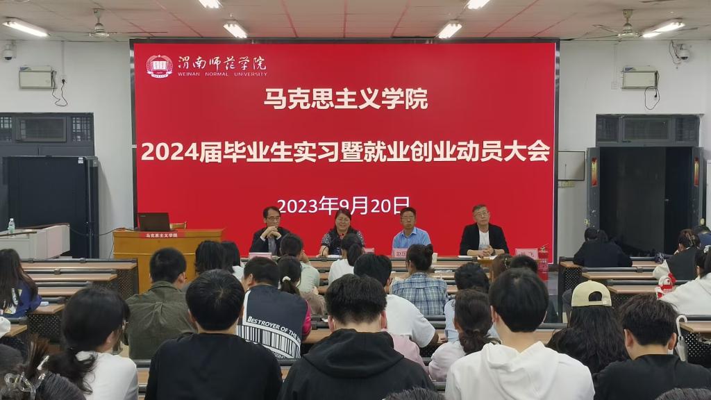 9月20日下午,马克思主义学院召开2024届毕业生实习暨就业创业动员大会。学院党总支书记赵国峰、院长张萍、副院长单剑峰、办公室主任孙宁、指导教师代表穆军鹏和2020级全体学生参会。会议由党总支副书记肖飞主持。