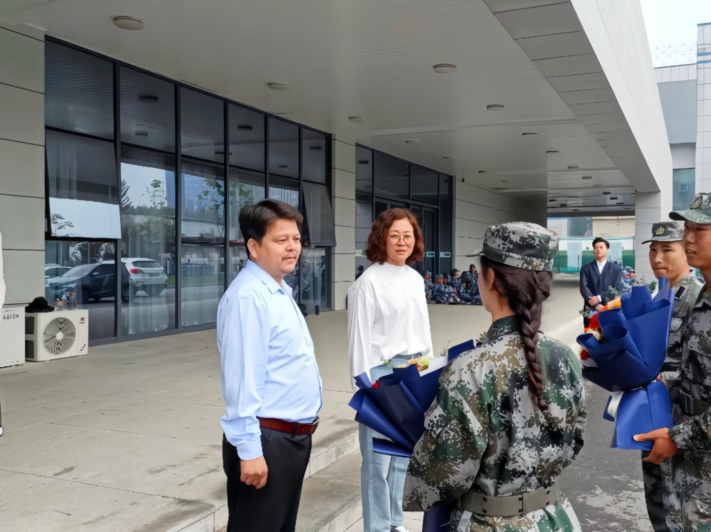 整齐划一的方队表演,离不开教官的严格训练和每位同学的齐心合力,完整的军训演绎,离不开教官的辛苦付出和每位同学的勠力同心。各连学生代表为教官送上鲜花以表达诚挚的感谢。最后,各连进行合影留念,留下这一段美好的回忆。(通讯员 李雪荣 审核人 权轻舟)