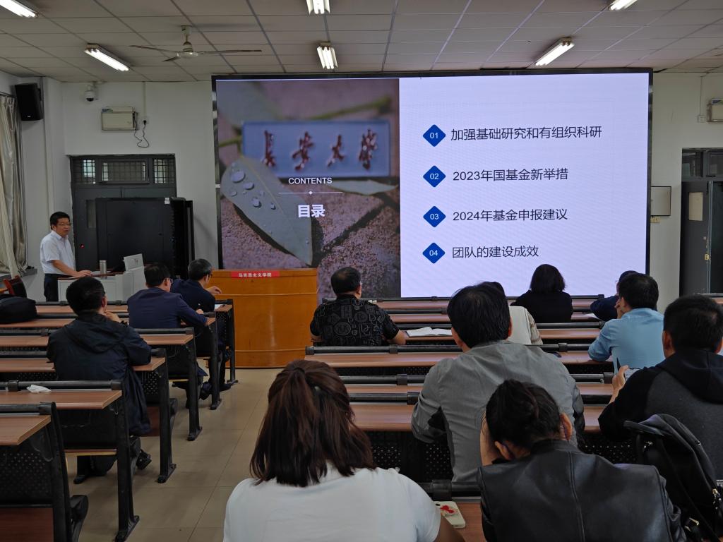报告会上,闫茂德围绕“加强基础研究和有组织科研提升团队的项目质量和承担能力”的主题,从我国基础研究现状与挑战、加快推进我国基础研究发展的措施、强化有组织科研等方面解读了加强基础研究和有组织科研的具体方法;从国家相关文件、2023年国家自然科学基金新举措十二条、成员信息采集、成果填报、限项规定、预算编报、科学属性等方面分析了2023年国家自然科学基金新举措;从项目名称、申请代码和关键词、中英文摘要、立项依据、参考文献、研究目标、研究内容、关键科学问题、研究方案、可行性分析、研究特色与创新、年度计划、研究基础和工作条件、项目组主要成员、推行代表作制、基金评审、科研诚信等方面提出了2024年国家自然科学基金申报建议;从团队简介、团队带头人、团队骨干、团队获批科研项目、团队发表高水平SCI论文、团队发表高水平期刊论文、团队授权发明专利、团队获批计算机软件著作权、团队出版教材专著和获奖等方面介绍了所在团队的基本建设情况。