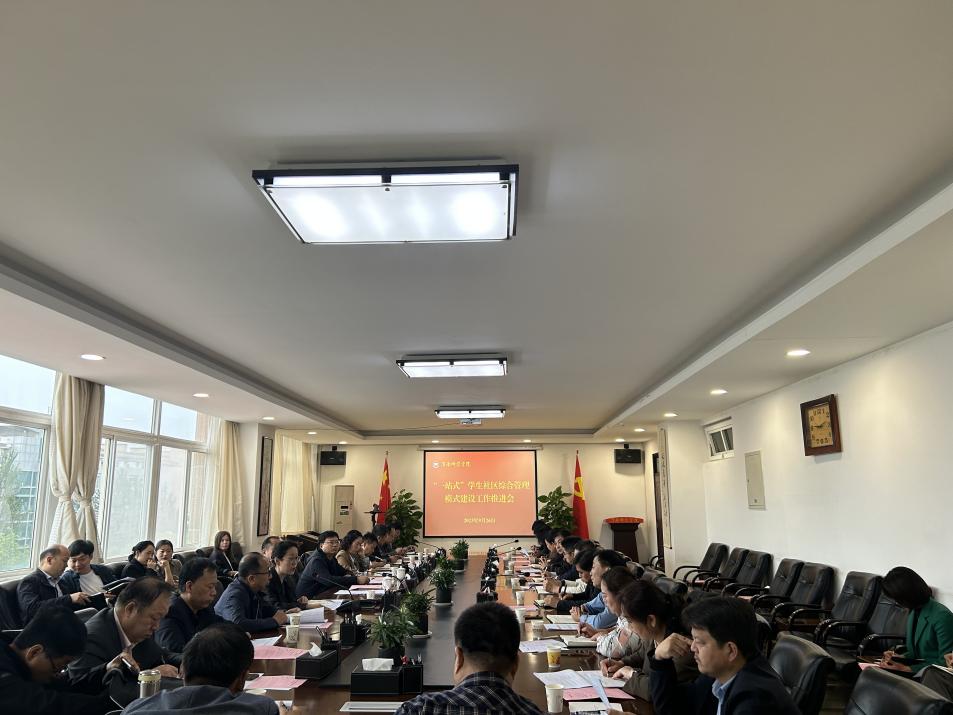会议由学生工作部副部长刘原主持。“一站式”学生社区综合管理模式建设领导小组、各二级学院党总支书记及学生工作部全体人员参加会议。