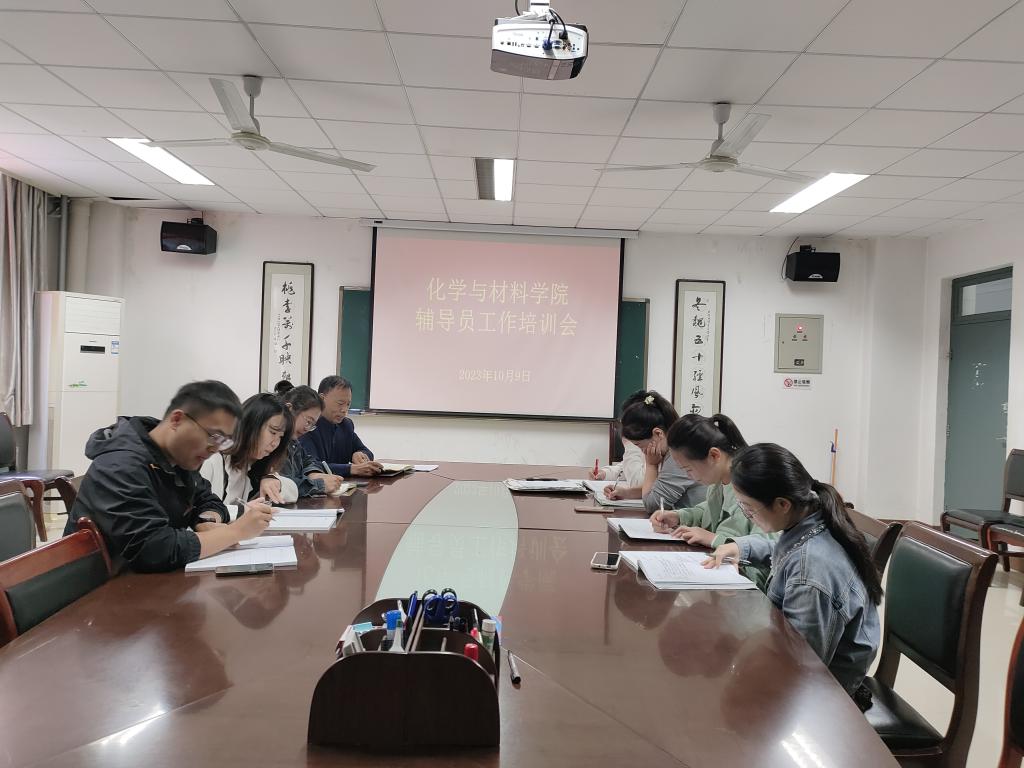 为深入贯彻党的二十大精神,推动辅导员职业化、专业化发展,提升辅导员的职业技能和工作水平。2023年10月9日上午10:00,化学与材料学院召开以“优秀的辅导员从哪里来”为主题的业务能力培训会。化学与材料学院党总支书记韩城忠、党总支副书记任晓婷及全体专职辅导员参会。