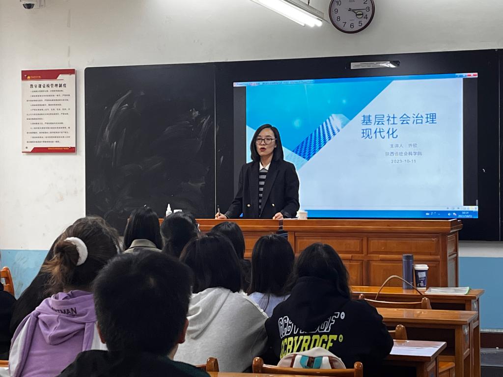 最后,鲜玉芳老师就本次授课作总结讲话。她再次感谢乔欣博士的精彩授课,乔欣博士用富有学理的语言,发人深省的故事,鲜活生动的案例,深入浅出的分析,对新时代中国基层治理的理论与实践问题进行了深入阐释,引发了在场师生的深入思考。同学们以热烈的掌声结束了这次思想盛宴、学术碰撞,并热切希望在今后能与陕西省社会科学院的专家学者有更多的交流与学习。(通讯员 鲜玉芳 审核人 张萍)