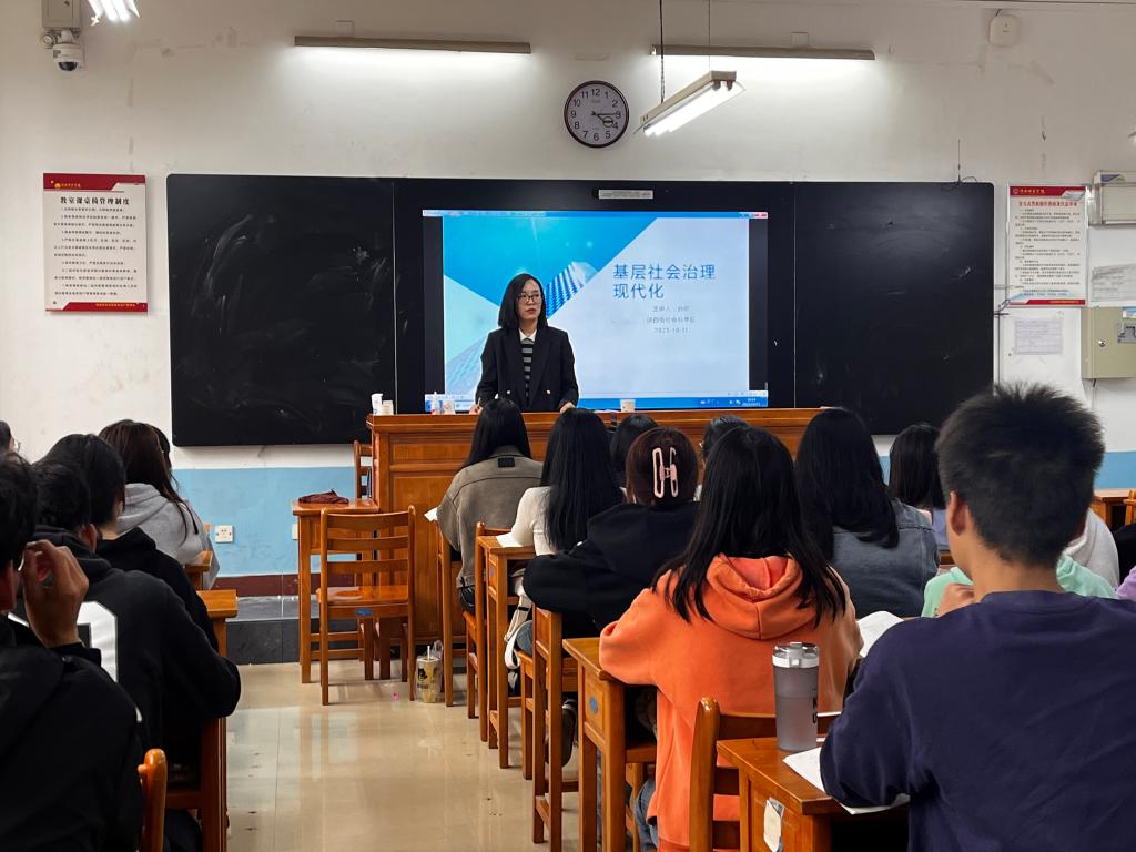 乔欣博士以“基层社会治理现代化”为题,主要从内涵、主特征、问题和路径等方面展开讲授,向同学们介绍了基层社会治理现代化的相关概念及其历史演变,梳理了基层社会治理实践的普遍特性,分析了新时代以来我国基层社会治理领域存在的突出问题,并结合“五个转变”,提出了实现基层社会治理现代化的路径方法。授课过程中,乔欣博士旁征博引、娓娓道来,同学们专心致志、认真听讲。