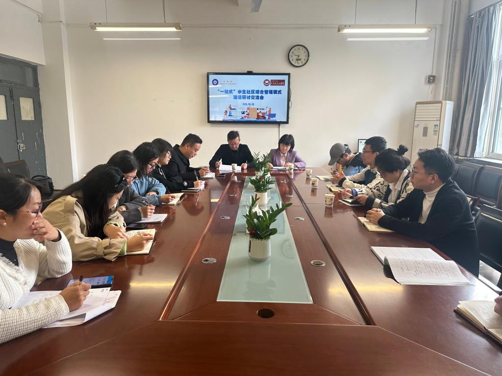 会上,孟子祥首先对“一站式”学生社区综合管理模式的内涵、历史沿革和重要意义作了简要介绍。随后,双方辅导员分别从思政引领、学风建设、活动开展、空间拓展等方面就“一站式”学生社区建设工作的内容及形式进行了充分的沟通交流,分享了服务模式与管理方法的新思路、新模式。双方辅导员一致表明,要始终坚持思政引领的工作核心,“变被动为主动”,以大学生喜闻乐见的方式开展教育活动,结合学生特点,举办丰富多彩的“一站式”学生社区党团活动。