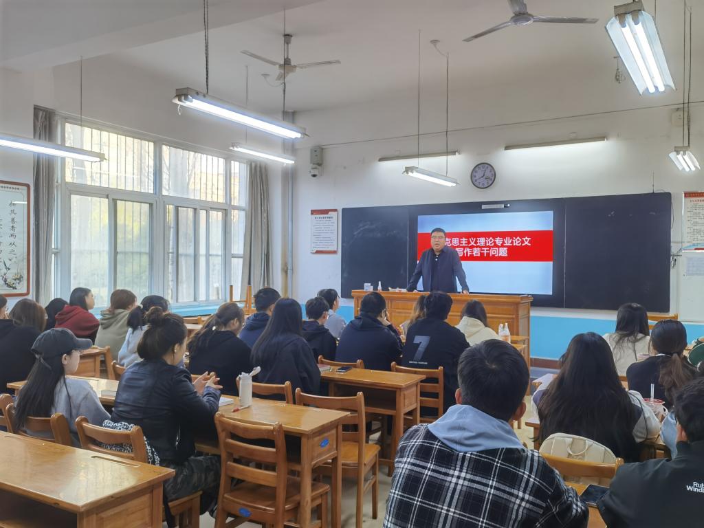 郑嘉禹以《马克思主义理论专业论文写作若干问题》为题作专题报告。他从马克思主义理论专业介绍、发展前景、就业方向等方面作了详细介绍,并深入分析了马克思主义理论专业学术论文创作的十大问题,还为学生考研提供了具体方向。整场报告气氛愉快,内容逻辑严密,语言风趣幽默,切合学生实际,引起了学生的热烈反响。