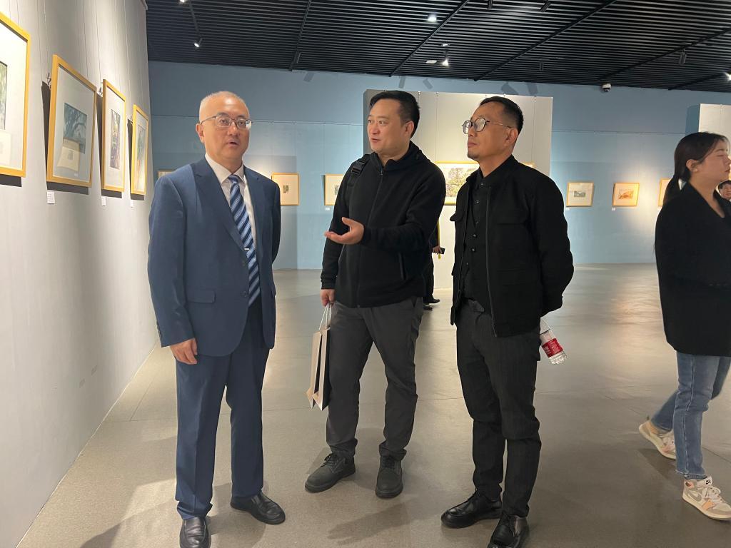 袁亮还参加了由黄陵县主办的“大美寻根——黄陵县水彩风景写生展”开幕式,并参观了画展。观展期间黄陵县副县长殷小彤介绍了此次展览意义,与袁亮书记商讨了校地产学研合作基本事项,希望进一步和best365深入加强合作与交流。通过观展袁亮强调在培养学生过程中要加强校地合作,进一步挖掘地方文化,充分利用地方自然资源,开拓校外美术资源,加强学生艺术实践能力的培养,扩大学校的影响力。