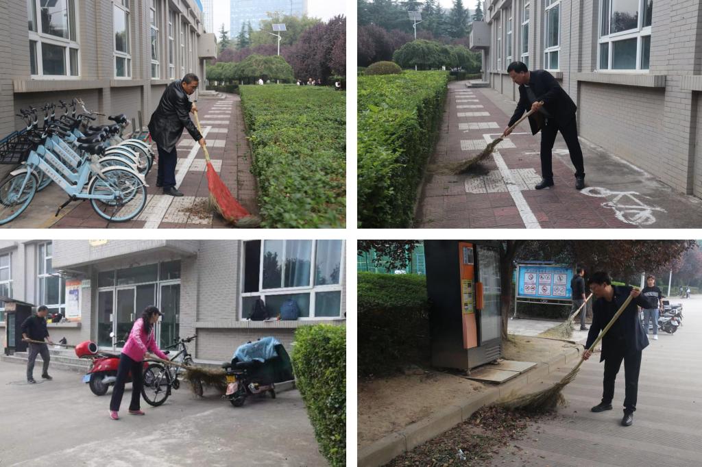 活动开始前,辅导员胡晋豫对清扫区域进行分工,闵雄飞副书记提出活动要求。大家对田径场周围的路面、绿化带等地方的落叶、随意丢弃的饮料瓶罐、塑料袋等垃圾进行了全方位清理。
