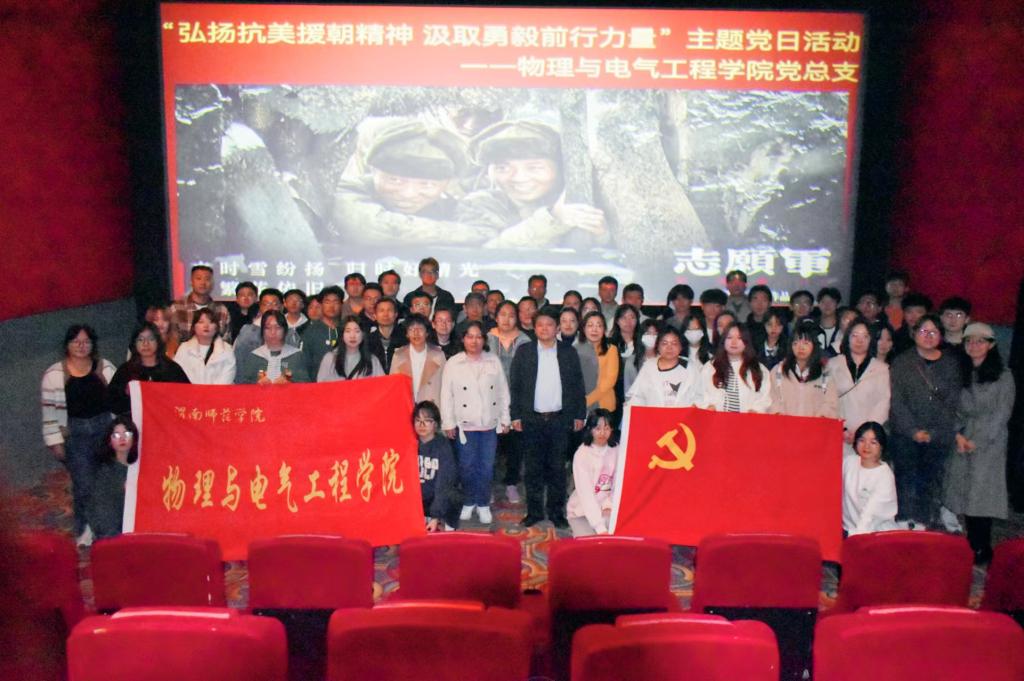 为纪念抗美援朝战争胜利70周年,深入开展学习贯彻习近平新时代中国特色社会主义思想主题教育,努力在以学铸魂、以学增智、以学正风、以学促干方面取得实效,10月23日晚,物理与电气工程学院党总支开展“弘扬抗美援朝精神 汲取勇毅前行力量”主题党日活动。