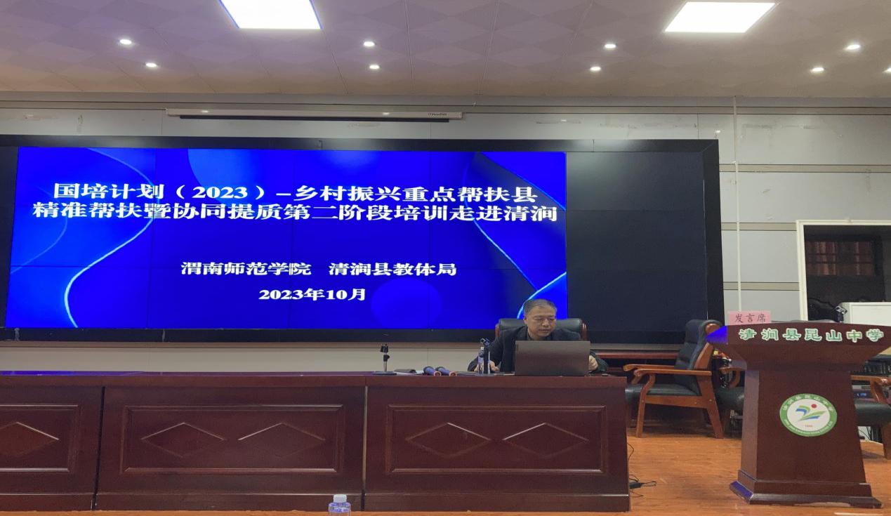 10月28-29日,国培计划(2023)——乡村振兴重点帮扶县、革命老区县(清涧)精准帮扶暨协同提质培训第二阶段骨干研修由best365中国官方网站与清涧县教体局在清涧县实施完成。best365继续教育学院副院长苟鹏军、清涧县教体局局长白炜、临渭区教研室原主任杨晓蓉等出席了开班仪式。仪式由清涧县教体局工会主席白锋锋主持。