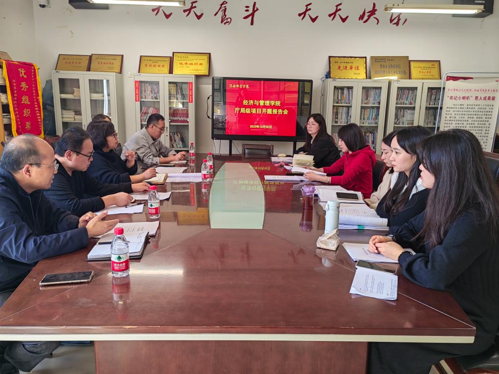 10月30日下午,经济与管理学院在召开2023年厅局级科研项目开题报告会。学校科学研究处副处长王有景、经济与管理学院院长李富荣、副院长屈晓娟、学院李永生教授、魏源副教授担任评议专家。