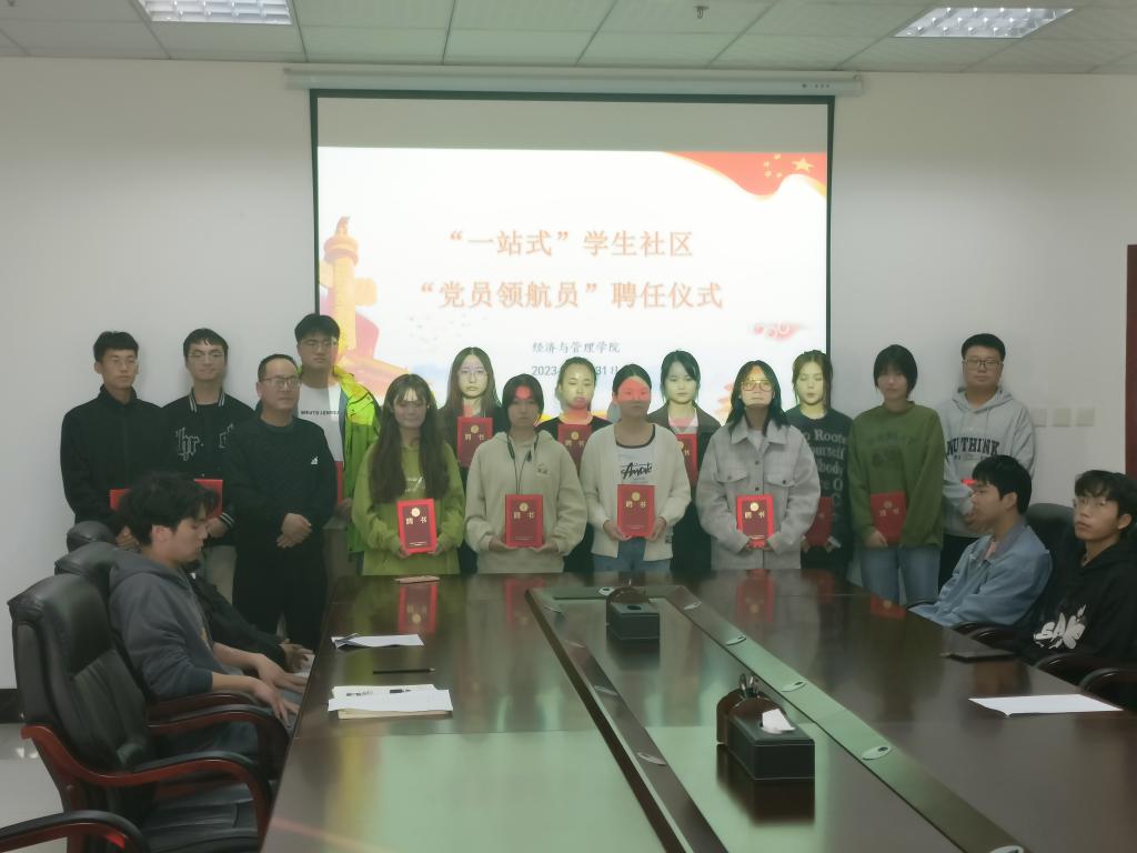 10月30日下午,经济与管理学院在富平校区行政楼会议室举办了“一站式”学生社区“党员领航员”聘任仪式。学院党总支书记魏光民,辅导员兼团总支书记刘婉婷,富平校区全体预备党员和各班班长参加会议。会议由刘婉婷主持。
