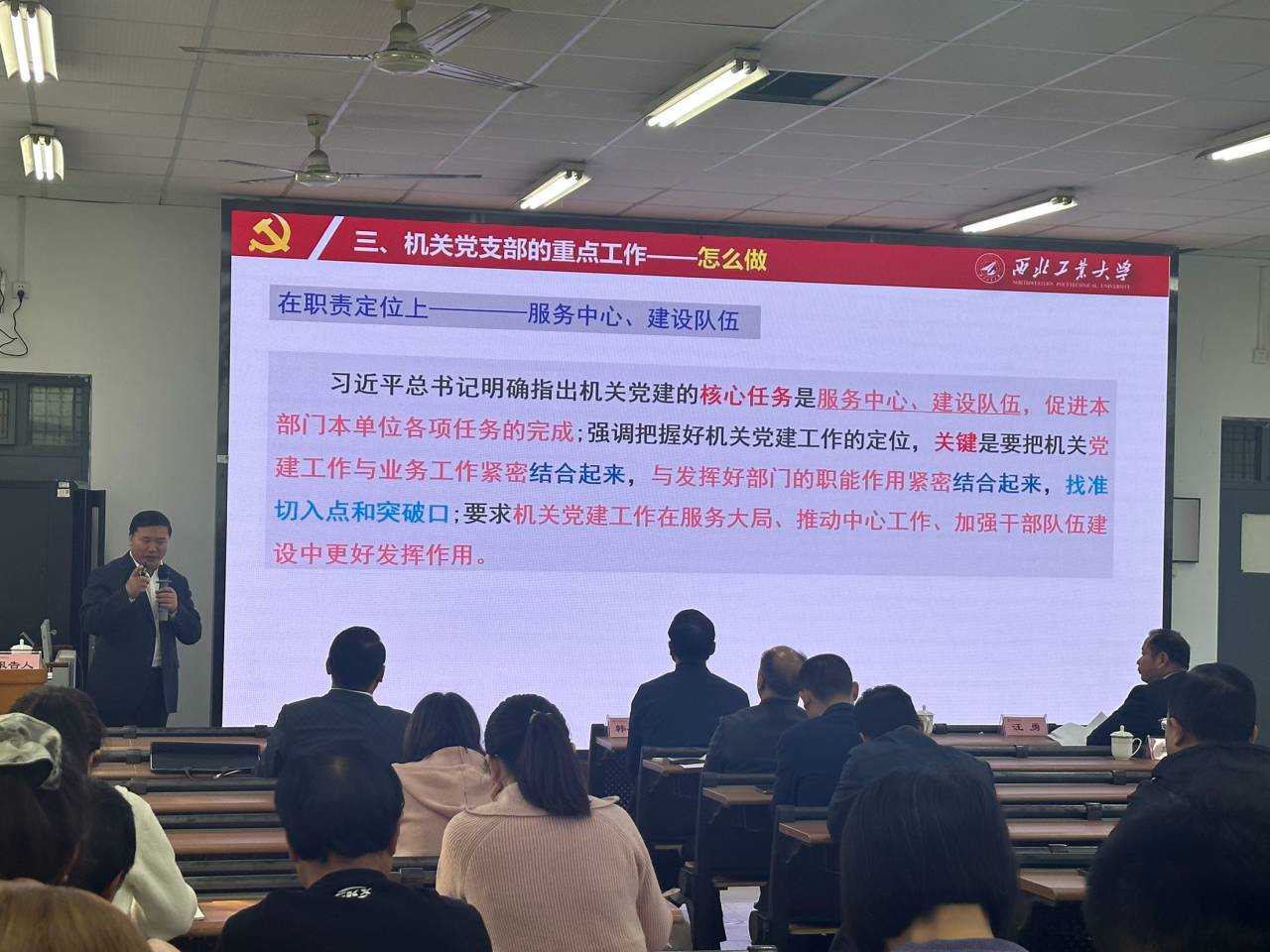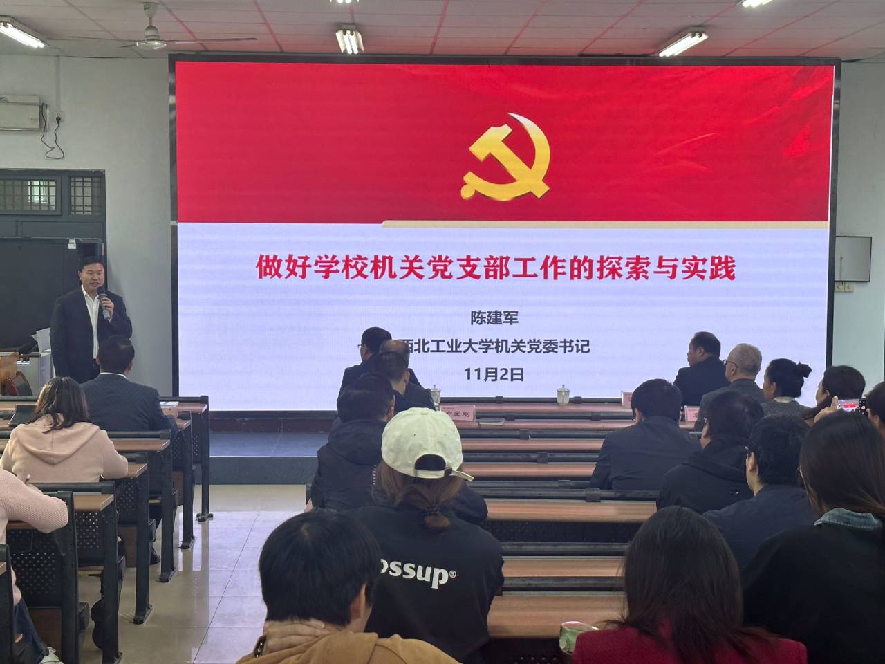 11月2日上午,西北工业大学机关党委书记陈建军应邀到best365以《做好学校机关党支部工作的探索与实践》为题作专题报告。报告会由机关党委书记董康军主持,学校领导与机关党员干部和机关各支部结对共建的二级学院师生融合党支部委员、党员代表等90余人参加报告会。