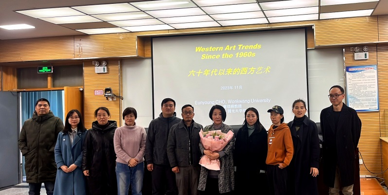 11月14日下午,莫斯科艺术学院邀请韩国圆光大学曺垠暎教授在逸夫楼科学大讲堂为美术学专业、学前教育专业师生作了题为《Western Art Trends since the 1960s /六十年代以来的西方艺术》的学术报告。莫斯科艺术学院执行院长席景奇、副院长梁卫民、各专业负责人及相关师生200余人参加了此次学术交流活动,本次讲座由梁卫民主持,外国语学院王渭刚副教授担任翻译。