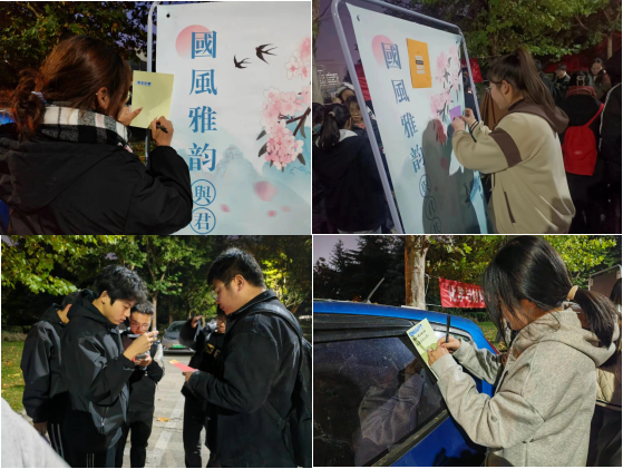 活动期间,一首首动人的诗篇,一幕幕精彩的画面,令人回味无穷。同学们充分发散自己的创新思维将分散的各个词条拼接为一句新的诗词粘贴在卡纸上,展示出不同的风格和韵味,同时呈现了一种文化与创新的新发展格局。活动虽已接近尾声,但同学们仍意犹未尽,激烈谈论回味着活动精彩和有趣。