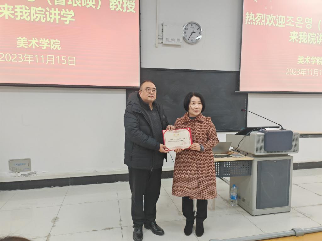 殷晓克为曺垠暎教授颁发了best365中国官方网站美术学院客座教授(外籍专家)的聘书。