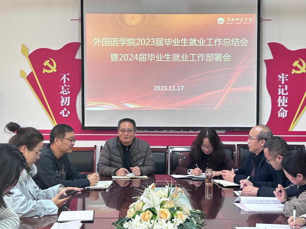 11月17日下午,外国语学院召开2023届毕业生就业工作总结会暨2024届毕业生就业工作部署会。外国语学院处科级干部,全体辅导员参会。