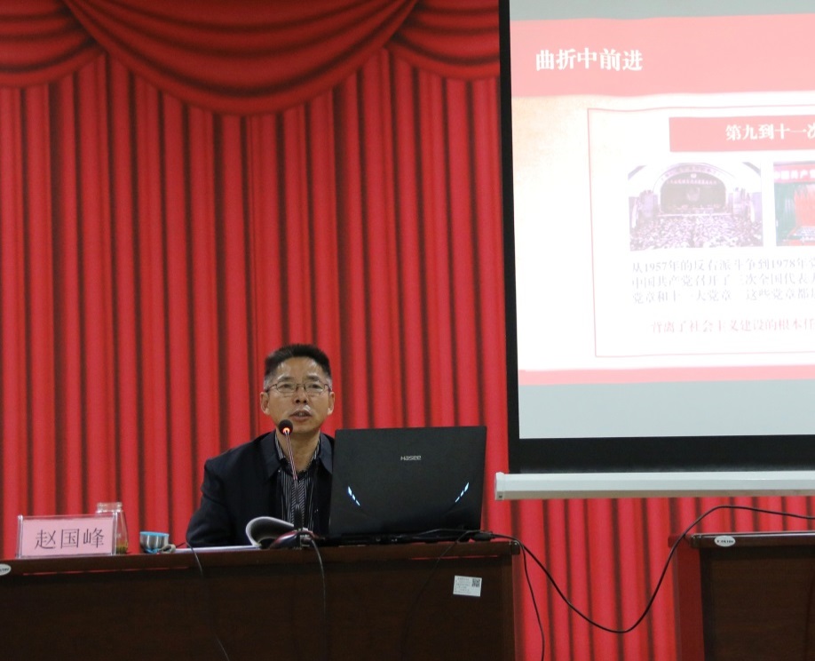 马克思主义学院党总支书记赵国峰作《认真学习党章、严格遵守党章、争做合格党员》专题辅导