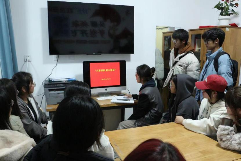 活动中,大一新生依次围绕自己制定的职业方向从个人性格、职业兴趣、环境情况等进行自我分析、并从行业认知、目标规划等方面展示了自己的职业规划。