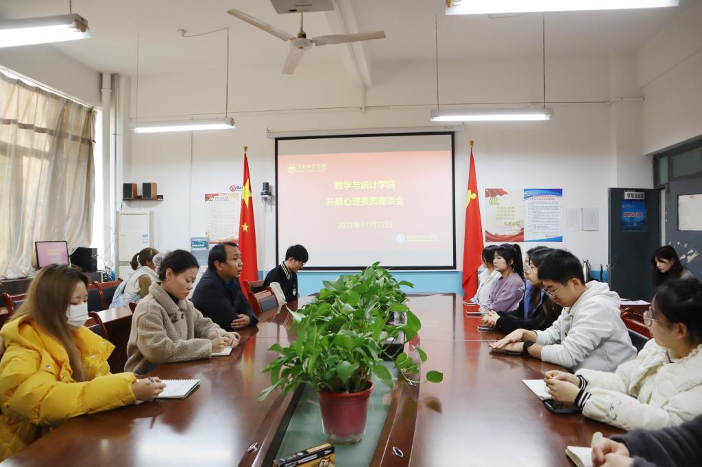 11月22日下午,数学与统计学院召开“共话心理健康 助力学生成长”为主题的心理委员座谈会。学院副院长赵教练、心理专干马岩、全体心理委员参加本次座谈会。